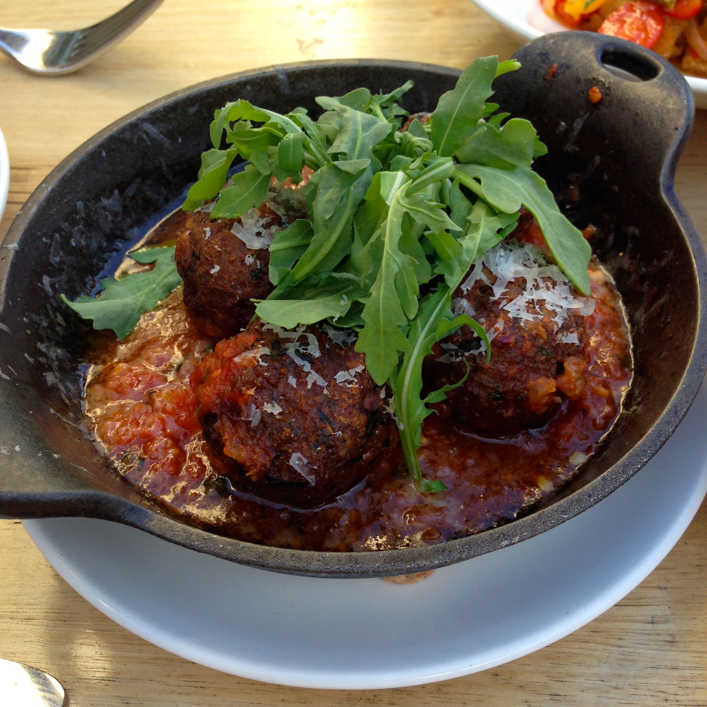 Spicy pork meatballs. Roasted tomato, parmigiano reggianno, wild arugula. Meatballs seem to be standard fare at most tapas-style restaurants, but the ones here definitely stood out. The meatballs were tender and really soaked up the spicy tomato sauce.