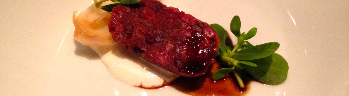 Black bass, parsnip, pickled ginger, nori mustard. I wasn’t wowed by the black bass. I would have a preferred lighter treatment of the fish, such as searing.