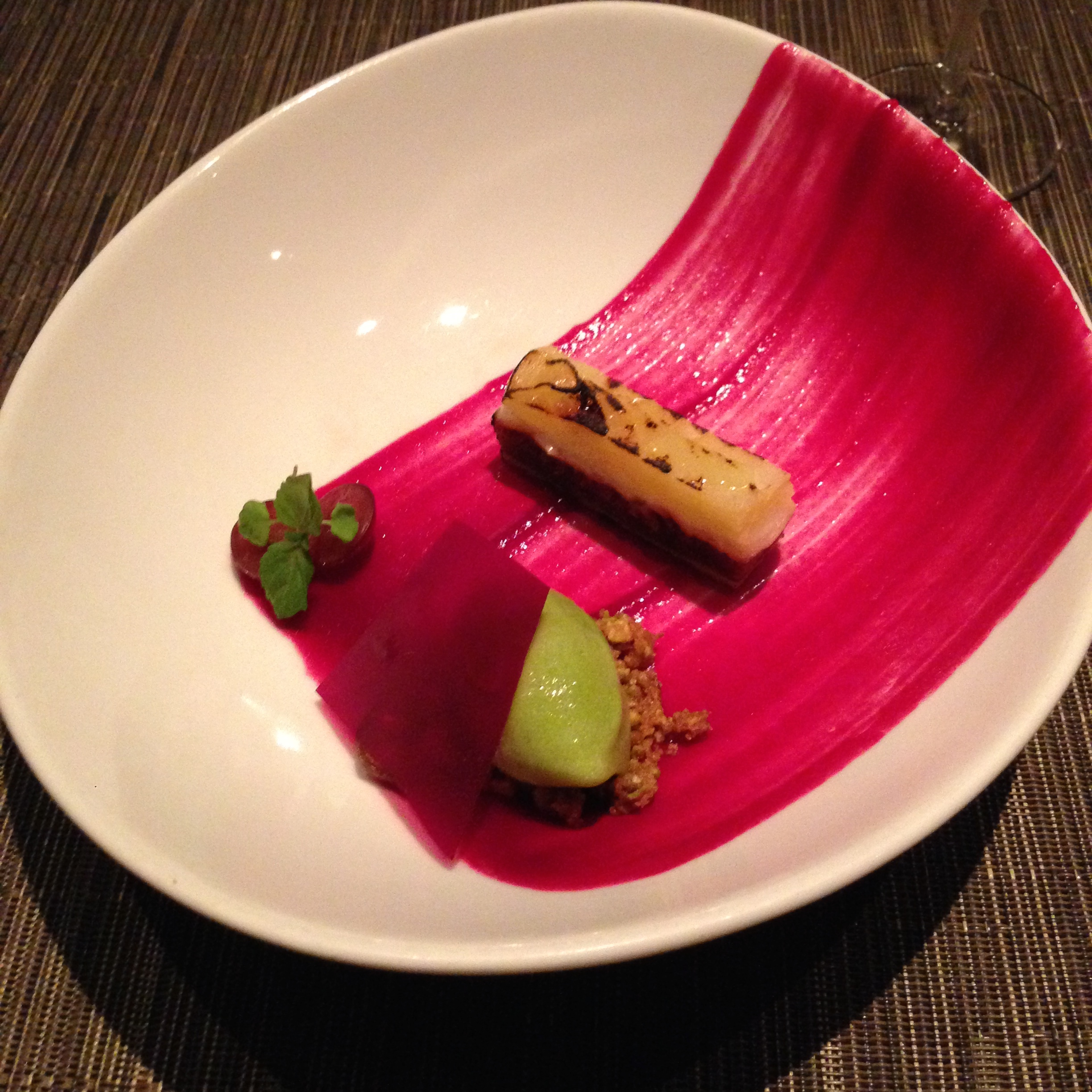 Apple tart, pomegranate, sorrel, pistachio. The apple tart was just the right mix of sweet and sour, and the pomegranate served as an excellent backdrop for the dish.