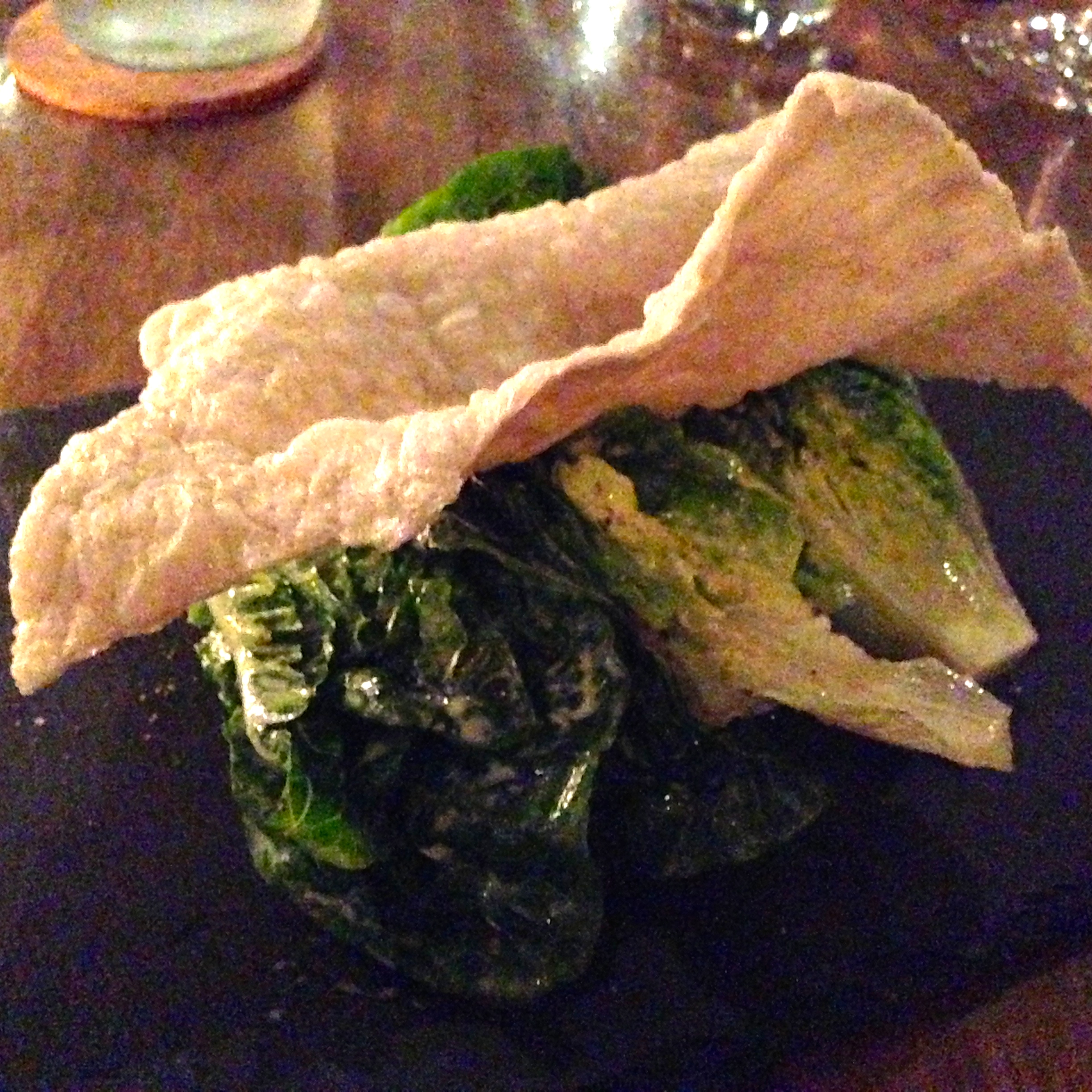 Little gems. Burrata, anchovy cracker, lemon dressing. The little gem lettuce was crunchy and nicely seasoned with lemon dressing. The burrata, which is hiding below the lettuce in this picture, was creamy and refreshing. I even enjoyed the anchovy cracker, which reminded me of the shrimp-flavored chips my mom used to fry when I was little.