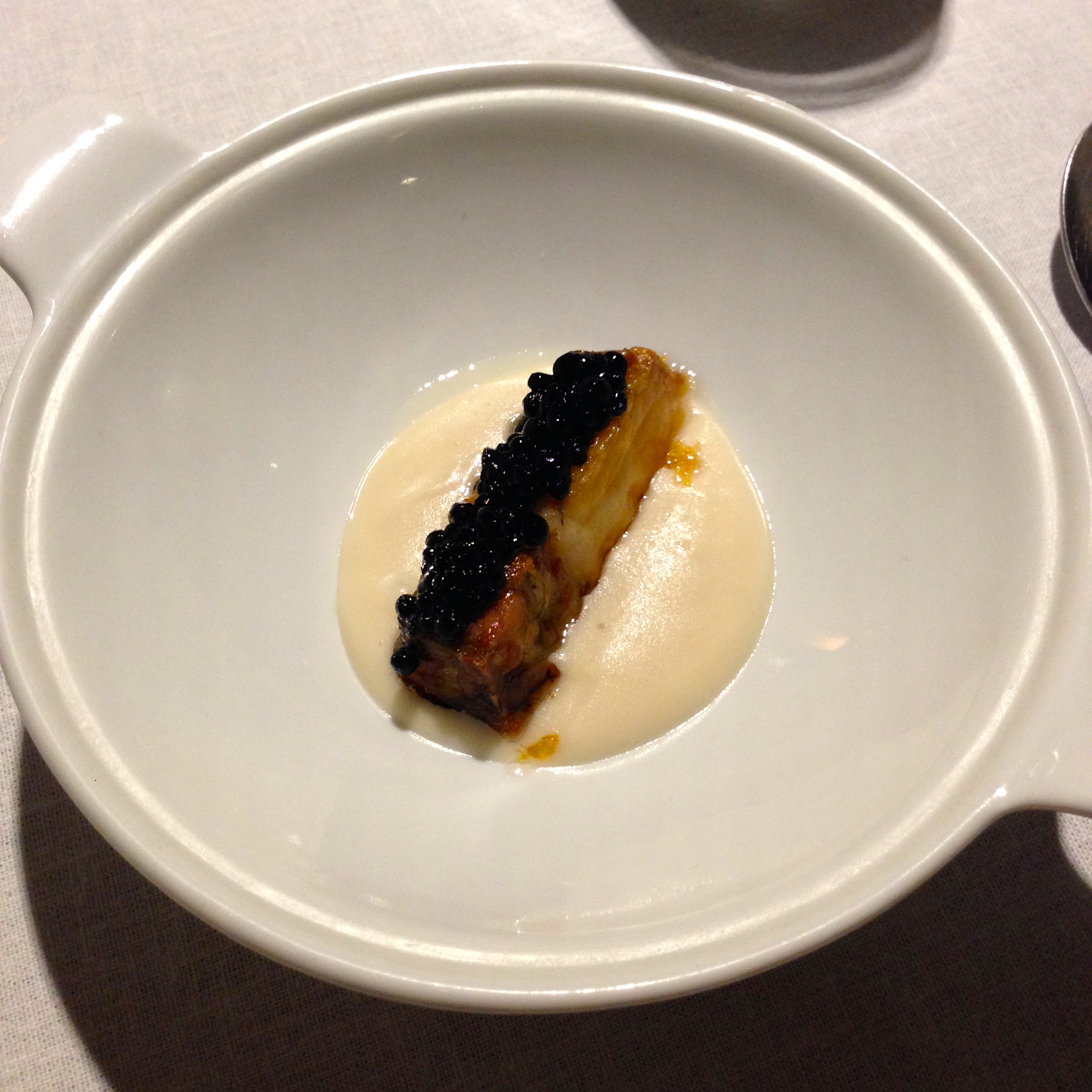 Foie gras with whipped cream and coffee aioli. I wasn’t as much of a fan of the coffee aioli as I thought I would be, but the pieces of foie gras paired well with the lightness of the whipped cream.